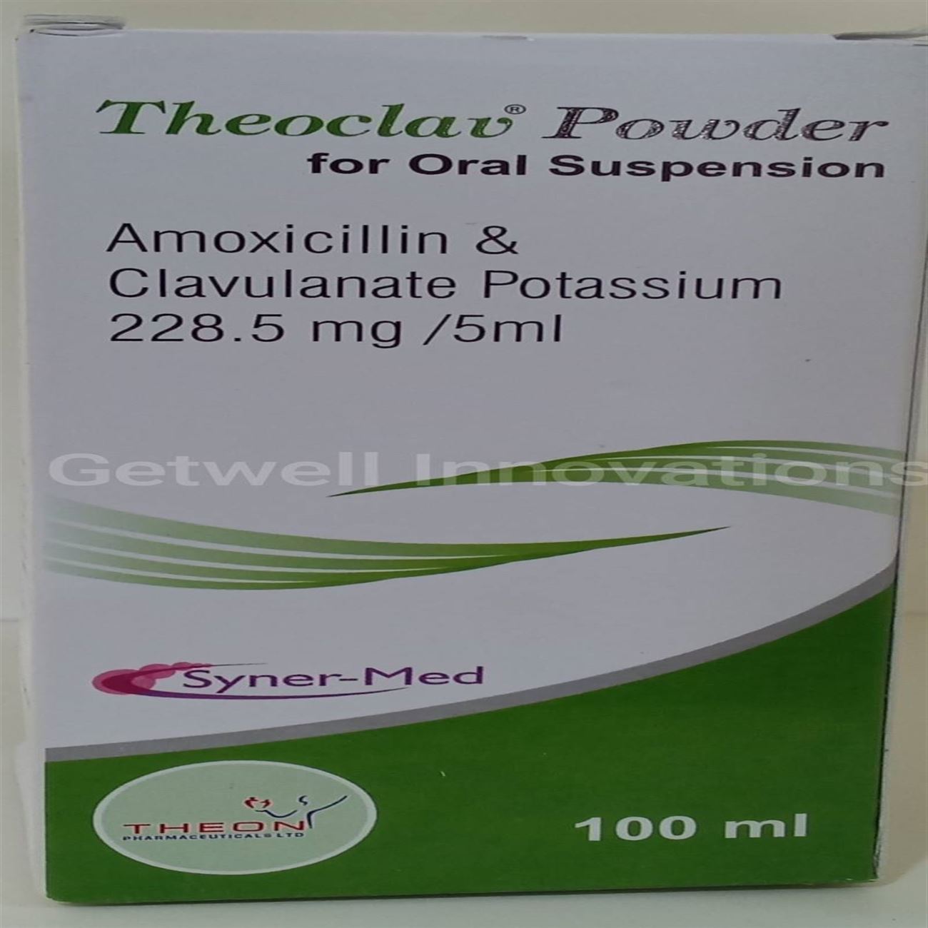TheoClav 228mg suspension is indicated for the treatment of bacterial infections, contraindicated in patients with a history of hypersensitivity to penicillins or cephalosporins, may cause side effects such as gastrointestinal disturbances and allergic reactions, and can interact with anticoagulants and other medications that inhibit renal tubular secretion.