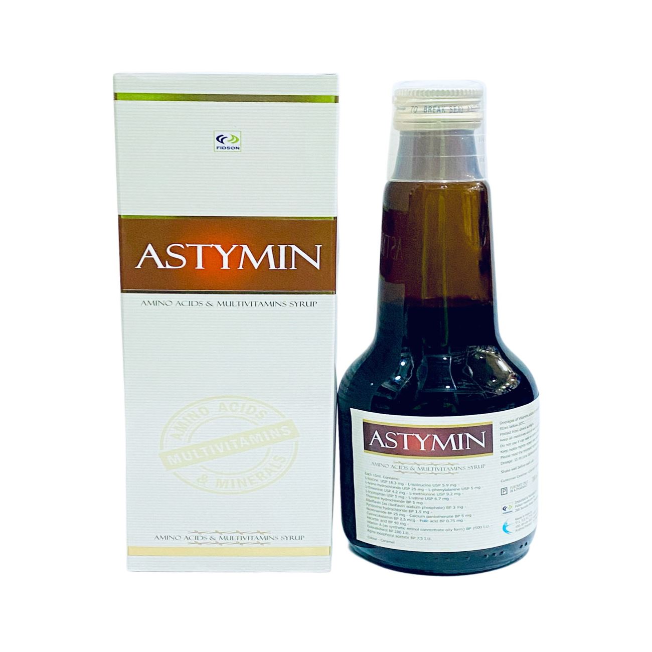 Astymin syrup is indicated for the treatment of vitamin and mineral deficiencies, contraindicated in individuals with hypersensitivity to its components, may cause side effects such as gastrointestinal upset or allergic reactions, and may interact with certain medications like anticoagulants or other supplements.