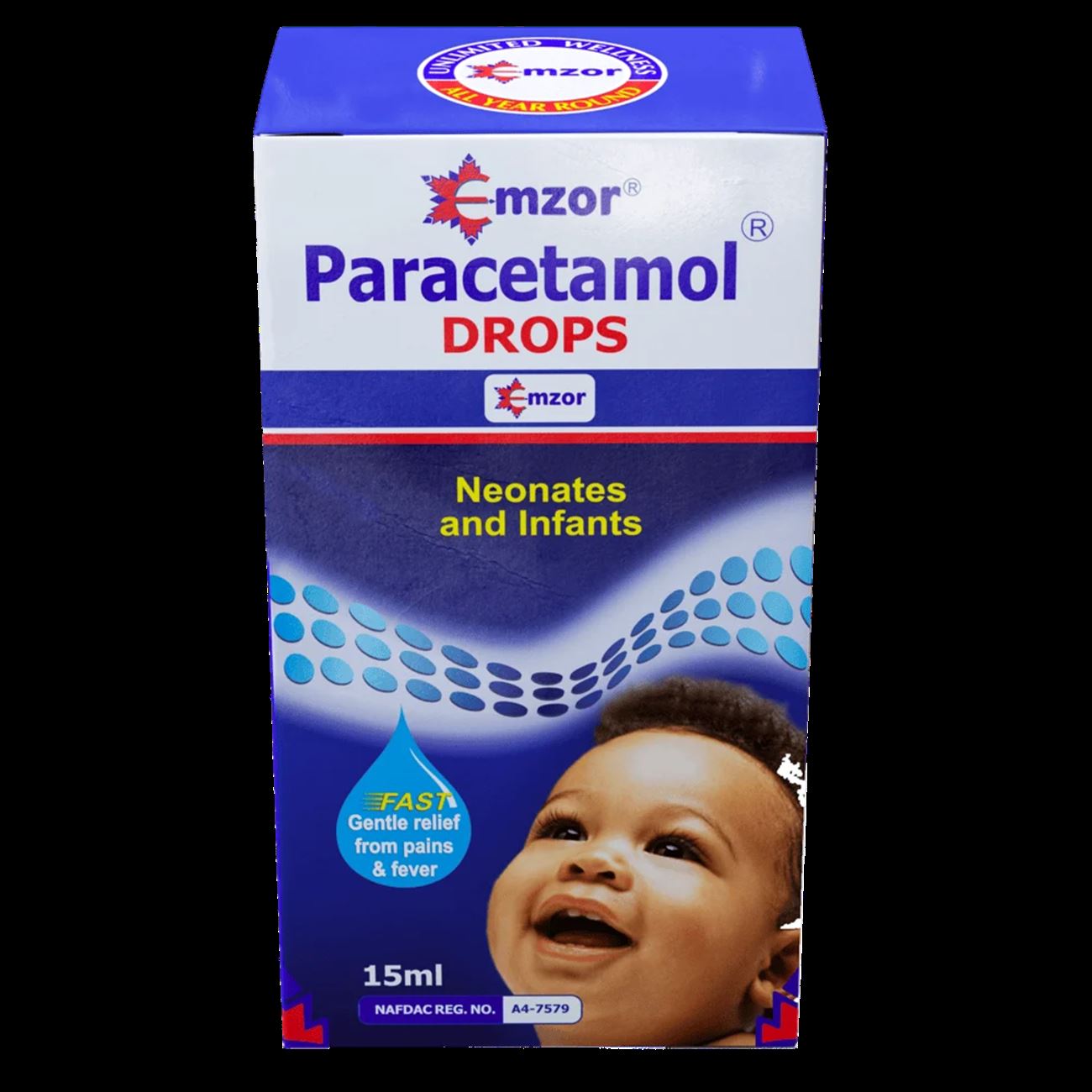 Paracetamol drop (Emzor) is indicated for the relief of mild to moderate pain and fever, contraindicated in patients with severe liver impairment, may cause side effects such as nausea or allergic reactions, and can interact with anticoagulants, potentially increasing the risk of bleeding.